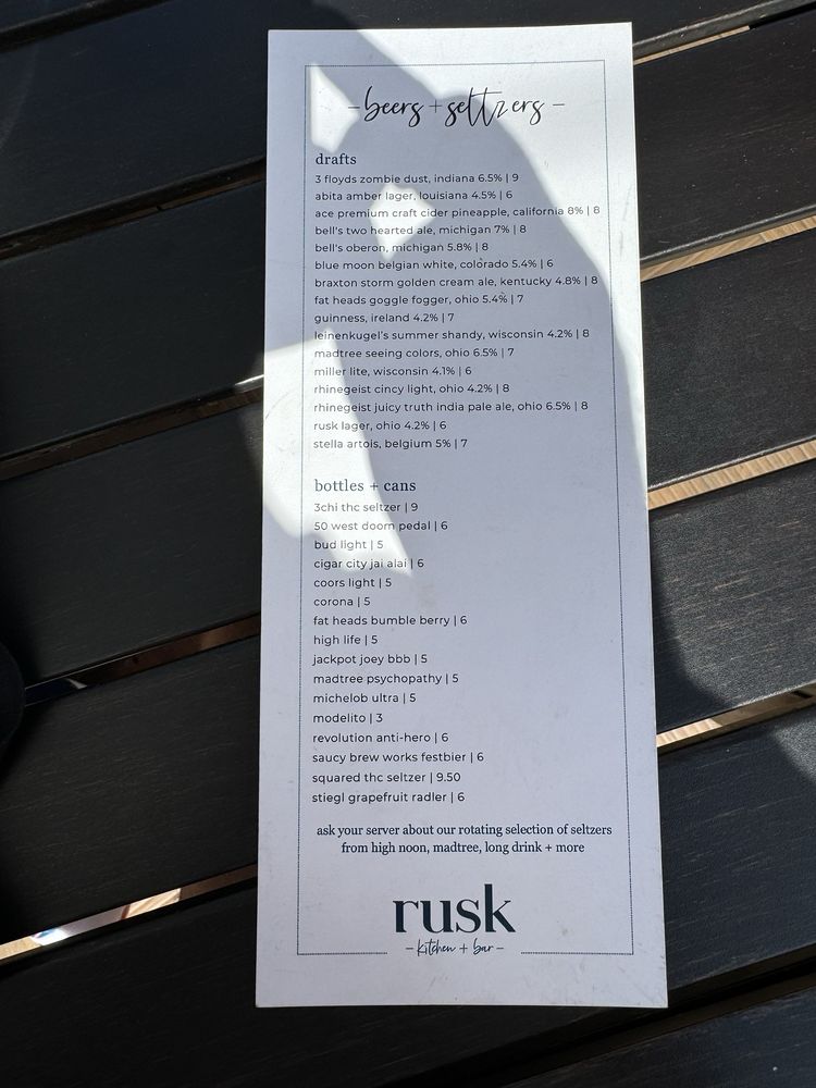Introducing Rusk Kitchen & Bar, a trendy American restaurant located in Cincinnati, OH. This establishment offers a variety of amenities such as takeout, delivery, outdoor seating, and a full bar with an extensive bourbon and whiskey selection. The menu features unique dishes like the Animal Farm, Chicken+Waffles, and the Classic Burger. Customers have praised the attentive service, delicious food, and beautiful decor of the restaurant. Happy hour specials include discounted drinks and bites under $8, making it a great spot for gatherings and casual dining. While some reviews mention minor issues like hair in the food, overall, Rusk Kitchen & Bar is a promising dining destination worth checking out for its cozy ambiance and evolving menu offerings.